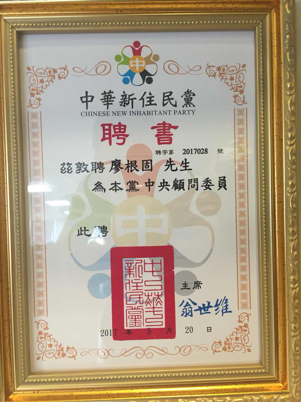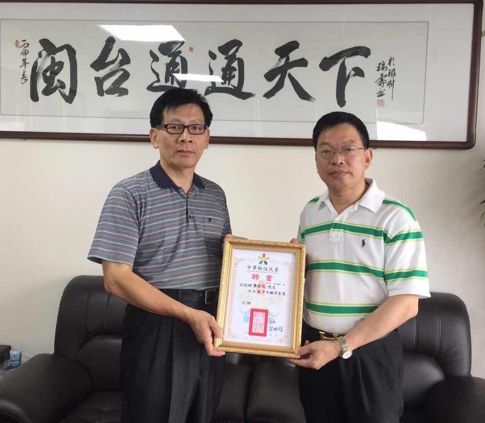 5月23日,中华新住民党翁世维主席、邱春溶总裁莅临闽台电子商务考察,两位高度肯定了闽台电子商务公司“闽台通”独创的以消费福利化模式为基础,以创新互联网技术为依托的新型商业模式,并正式签署全面战略合作伙伴协议,开启双方就两岸资本对接、项目引进、商品进出口、技术推广、文化交流等领域的全方位深度合作。签约仪式上,还聘公司董事长廖根固为中华新住民党党中央顾问委员。