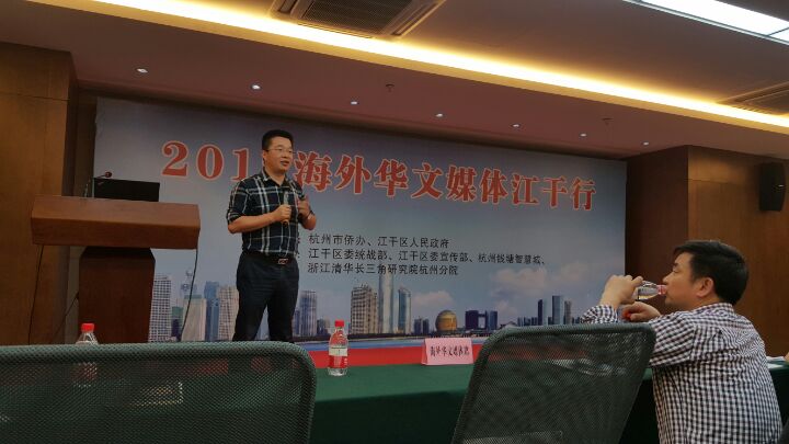 本报讯 (记者 龙敏 摄影报道) 5月24日,三十余家海外华文主流媒体的老总们,在杭州市台办的精心安排下,应邀前往杭州江干区浙江清华长三角研究院研究分院 , 以及俩岸文创产业合作试验区(杭州创意设计中心)进行参观访问并进行现场采访报道。